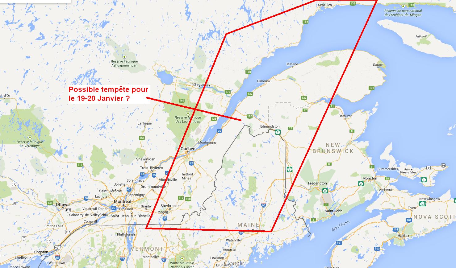 Une faible dépression venant de l’Alberta apportera quelques accumulations de neige sur le sud et le centre du Québec au cours du week-end. Il est très possible que lorsque la dépression approchera la côte est, il y ait un nouveau développement côtier et que celui-ci apporte des conditions de tempêtes pour les régions du centre et de l’est du Québec. Tout dépendra de quand le transfert d’énergie se produira. Il est encore trop tôt pour parler avec certitude des régions touchées mais dans le scénario actuel, 25 à 30 centimètres sont possibles sur certains secteurs.