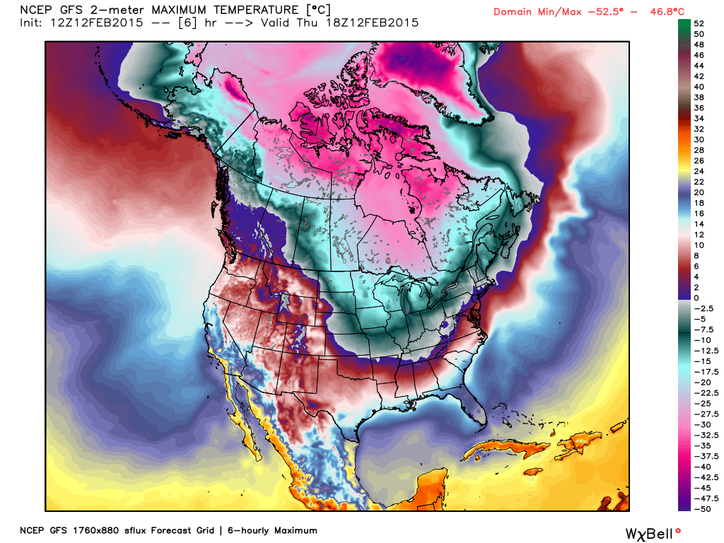 Comme nous sommes habitué depuis le début de l’hiver 2014-2015, nous avons l’impression qu’il ne fait que froid.. Et bien ce n’est pas terminé ! Encore ce soir plusieurs secteurs de l’ouest, centre et sud du Québec sont en avertissement de froid extrême. Des températures entre -25 et -40°C et avec les vents possiblement du -50°C !