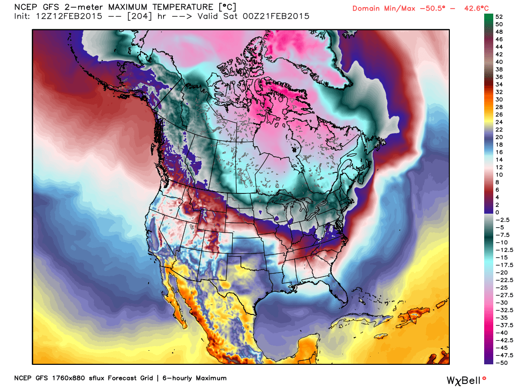 Nous voyons bien que le vortex polaire qui en ce moment va jusqu’au sud des États-Unis remontera près du Québec d’ici la fin de semaine prochaine.