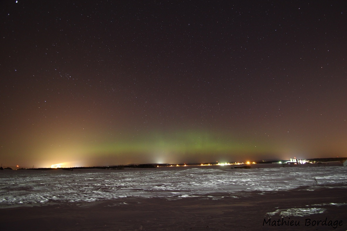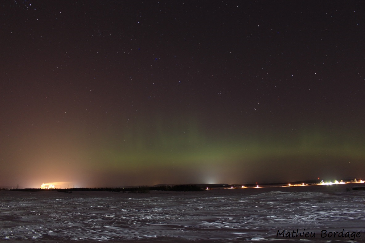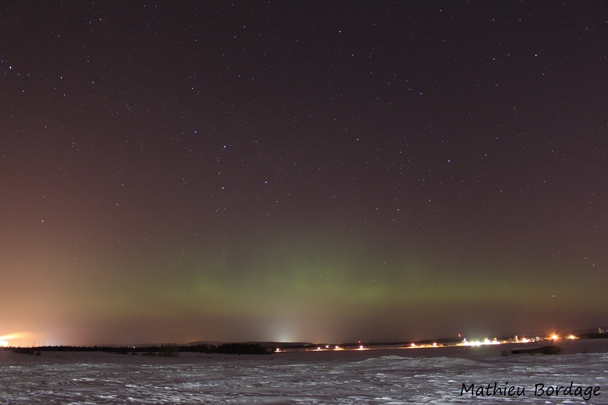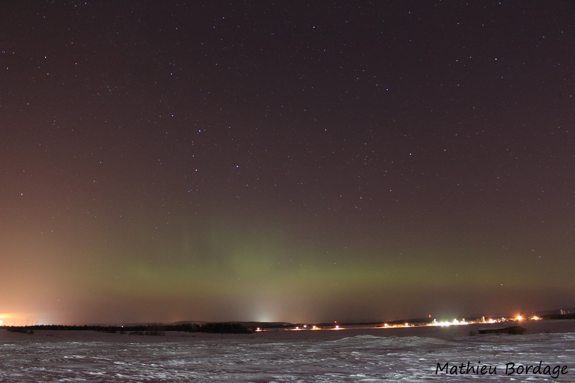 Après le passage d’un front froid la nuit dans la journée, les températures au sol ont chuté sous les -30°C et un refroidissement éolien de -41. Dans la journée le ciel couvert ne laisse pas présage un beau spectacle en début de nuit. Vers 22h00 le ciel c’Est finalement dégagé sur le secteur de Québec.