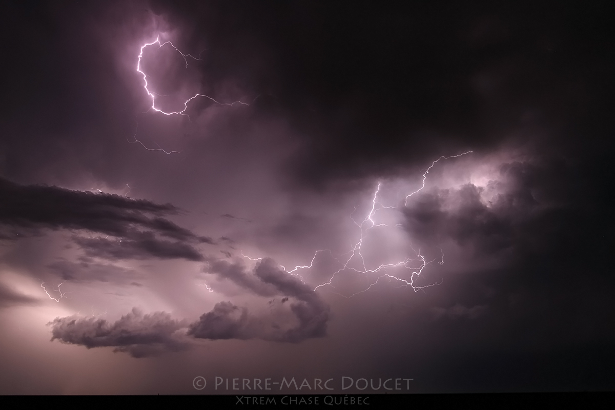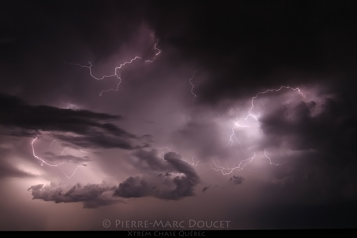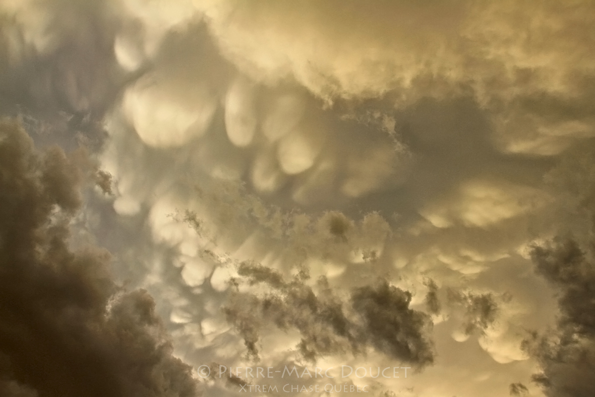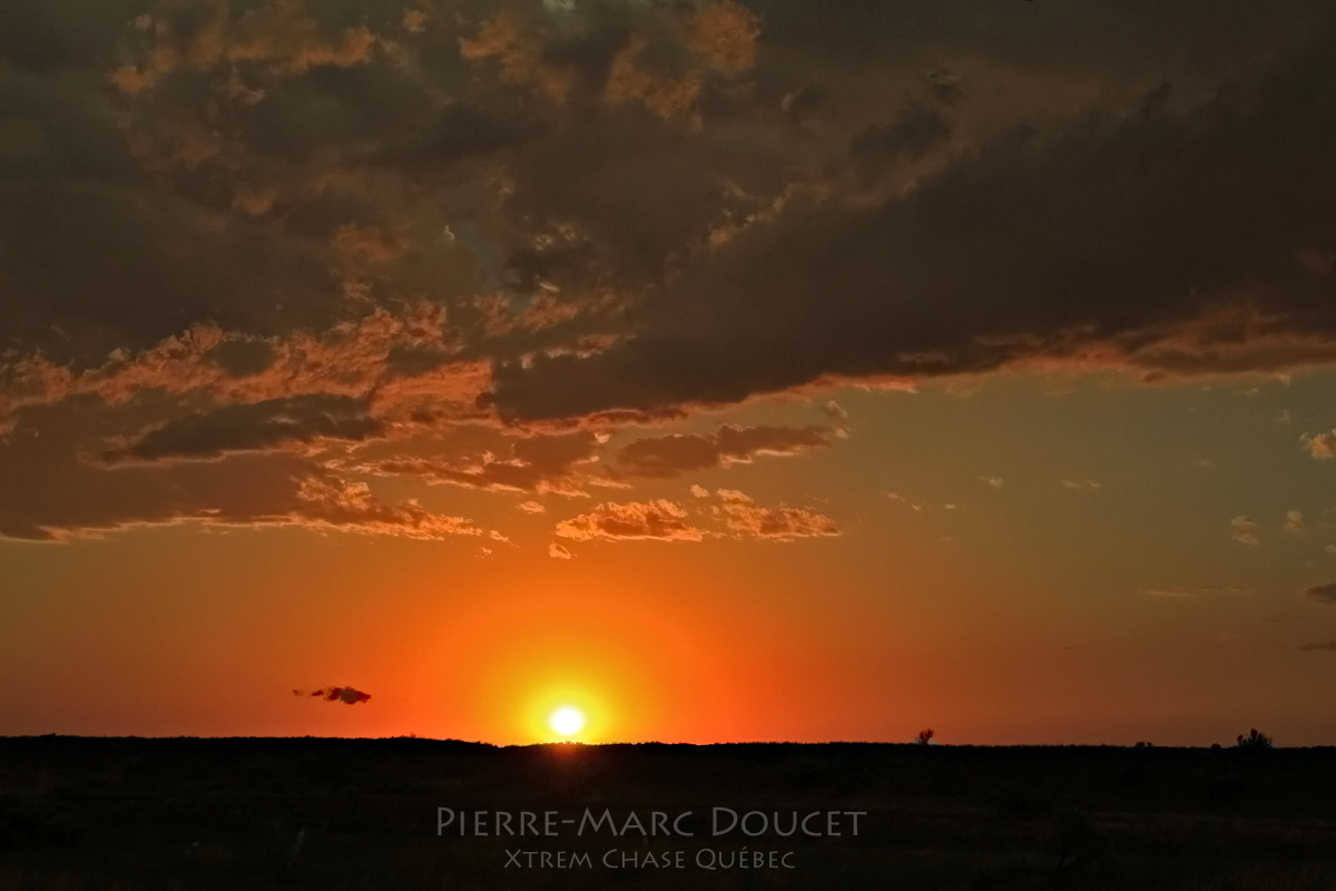 Plus la journée avançait plus les orages se développaient et se maintenaient en forme. Nous avons eu droit à de très beaux mammatus directement au-dessus de nous ! Le coucher de soleil était aussi très beau, typique des plaines ! Mais le plus beau spectacle de la journée allait bientôt s’offrir à nous !