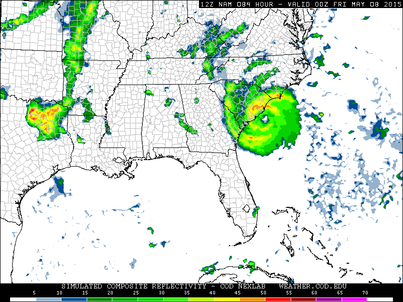 Les modèles météo semblent montrer une tempête tropicale en formation en ce moment près de Cuba. Quand on regarde à plus long terme il semble avoir la formation du premier ouragan de la saison 2015 dans l’Atlantique. Ana serait sont nom et elle frapperait entre la Floride et les Carolines.