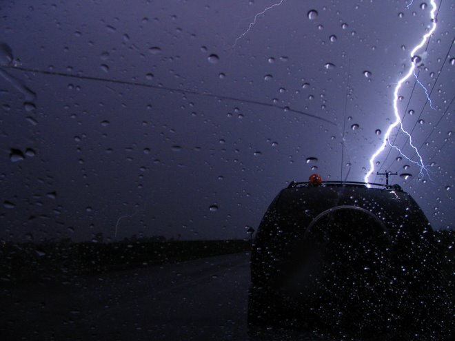 Premièrement vous ne pouvez pas prévoir ce que les autres font, comme toujours il faut anticiper. Vous devez aussi être particulièrement attentif en conduisant dans la forte pluie/grêle. Le risque d’aquaplanage est plus élevé. Chasser à deux est recommandé car une personne peut se concentrer sur la route, et l’autre, sur l’orage. Le conducteur ne devrait jamais se concentrer sur autre chose que la route, il doit éviter les distractions le plus possible. Le co-pilote se charge déjà de le diriger. Ne jamais conduire sur des routes inondées, elles peuvent cacher des fissures ou pires, des trous. Si vous vous stationnez sur le bord de la route pour observer un orage, soyez certain que vous êtes complètement en dehors de celle-ci et aussi, faites toujours sur d’avoir assez d’essence. Vous ne voulez pas être en panne sèche alors qu’un orage violent fonce sur vous ! Avoir un véhicule en ordre est aussi une priorité. Assurez-vous que les freins, les pneus et les essuies-glaces sont en bon état. Si vous avez un ennui mécanique, ne tarder pas à le faire réparer.