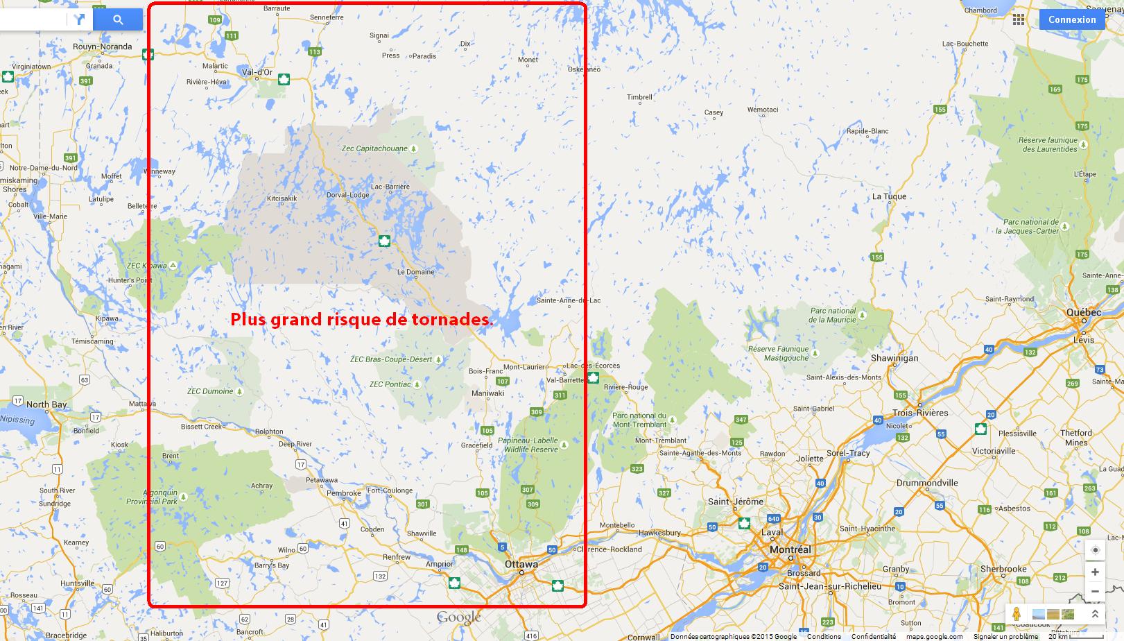 Représentation géographique du risque de tornades.