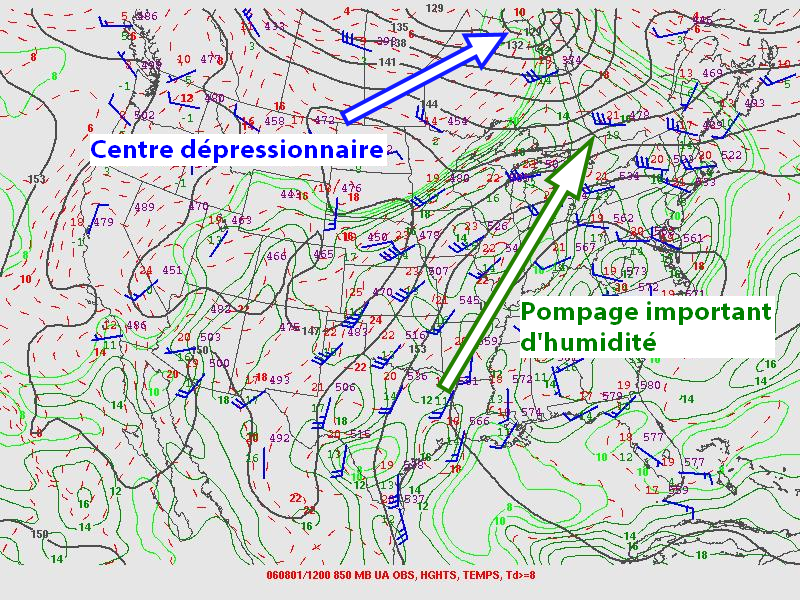 Carte de 850mb (1.5 km en altitude) ce matin-là.