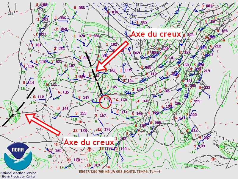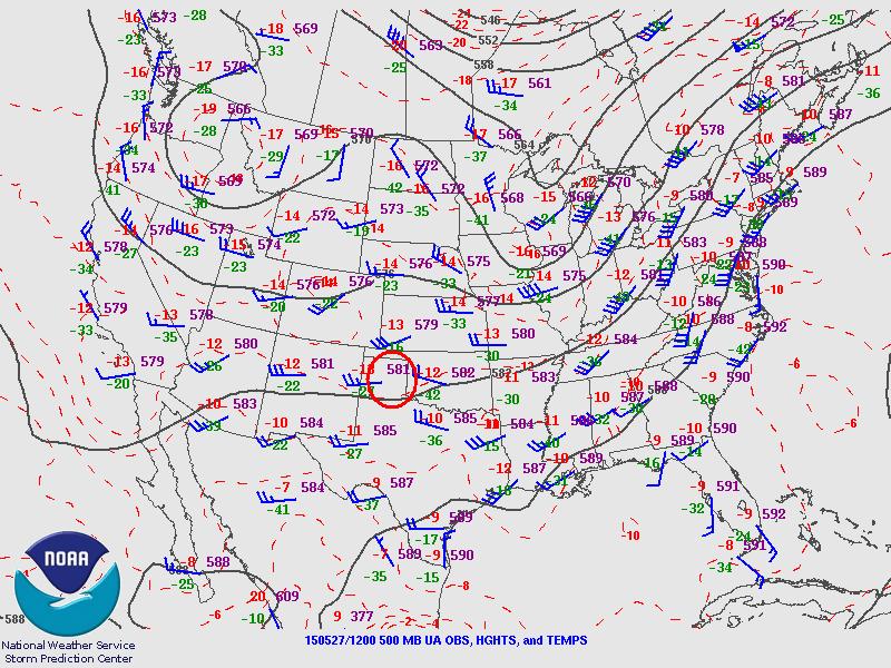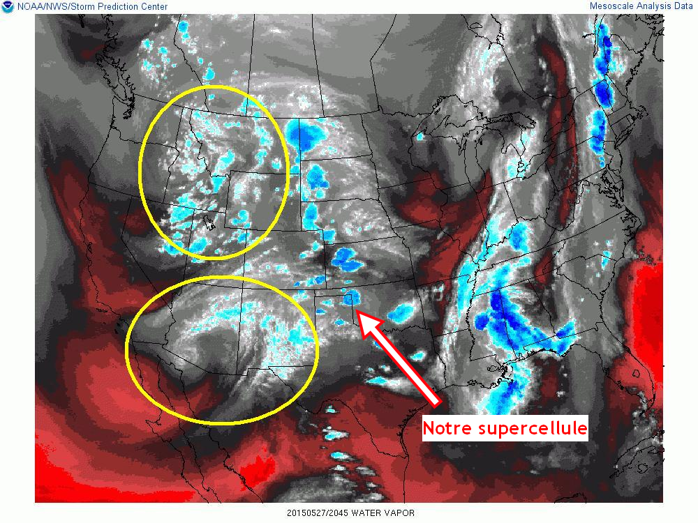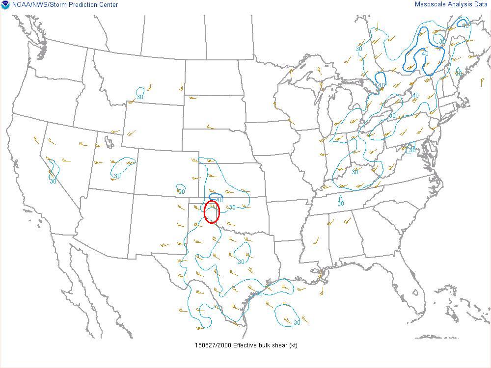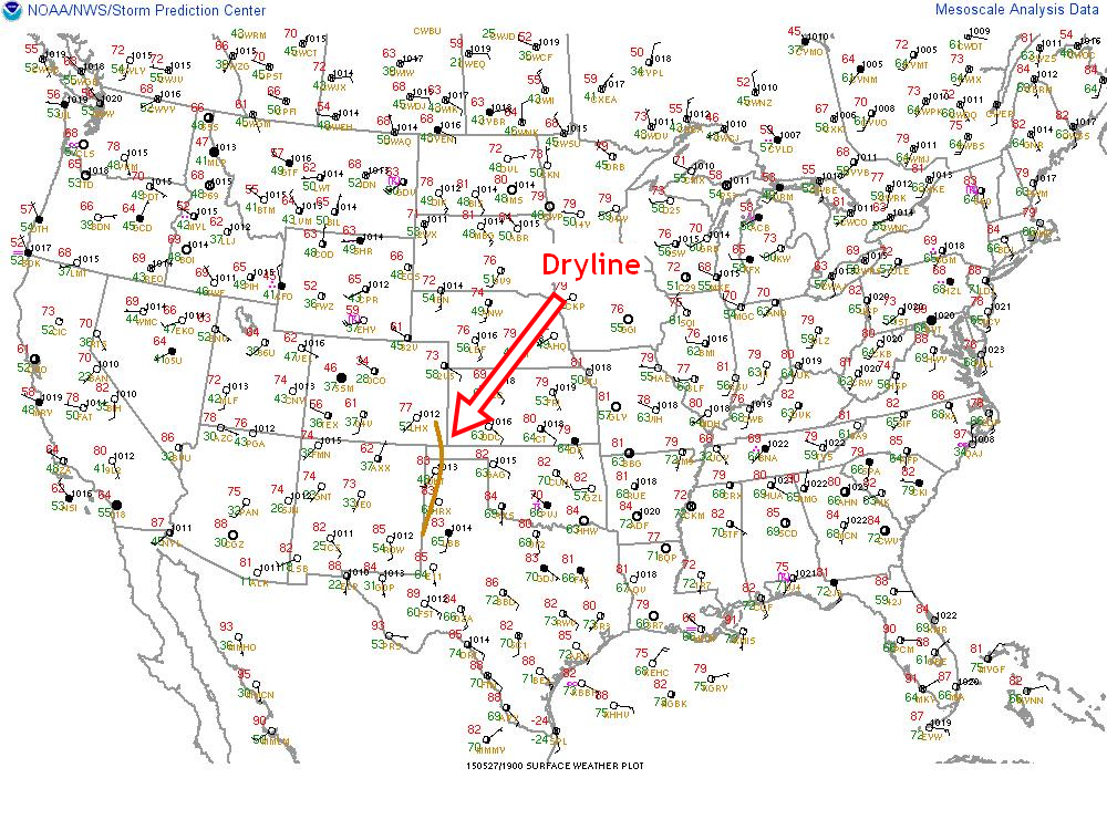 La formation d’une dryline près du Nouveau-Mexique s’avançant dans le Texas n’était plus qu’une question de temps. Celle-ci allait servir d’élément déclencheur avec l’avancée des creux en après-midi pour que les orages violents se forment. La dryline serait donc une bonne source de soulèvement orientée pratiquement nord-sud. Le cisaillement des vents avec la hauteur serait bien aligné à travers la « boundary » et le fait que les orages allaient pouvoir bien s’en éloigner, les supercellules pouvaient rester isolées.