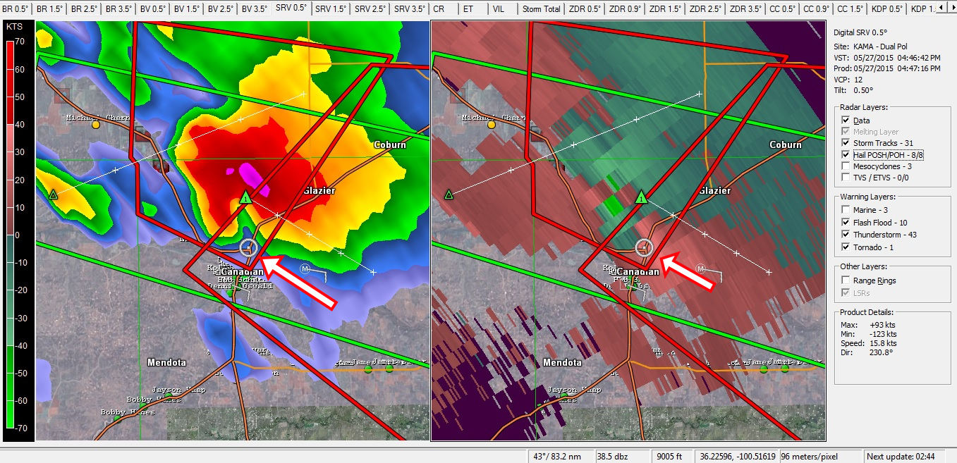 Il était probable que les meilleurs ingrédients remontent vers le nord aussi car avec les creux en approche des plaines, une dépression pouvait se creuser au pied des rocheuses et développer le « setup » davantage, on appelle ces dépressions des « lee cyclone ». Mais vu que nous étions dans le sud-ouest de l’Oklahoma et que tout semblait pointer vers le Panhandle déjà, nous avons pris la décision de nous diriger vers Canadian dans le nord-est du Texas Panhandle.