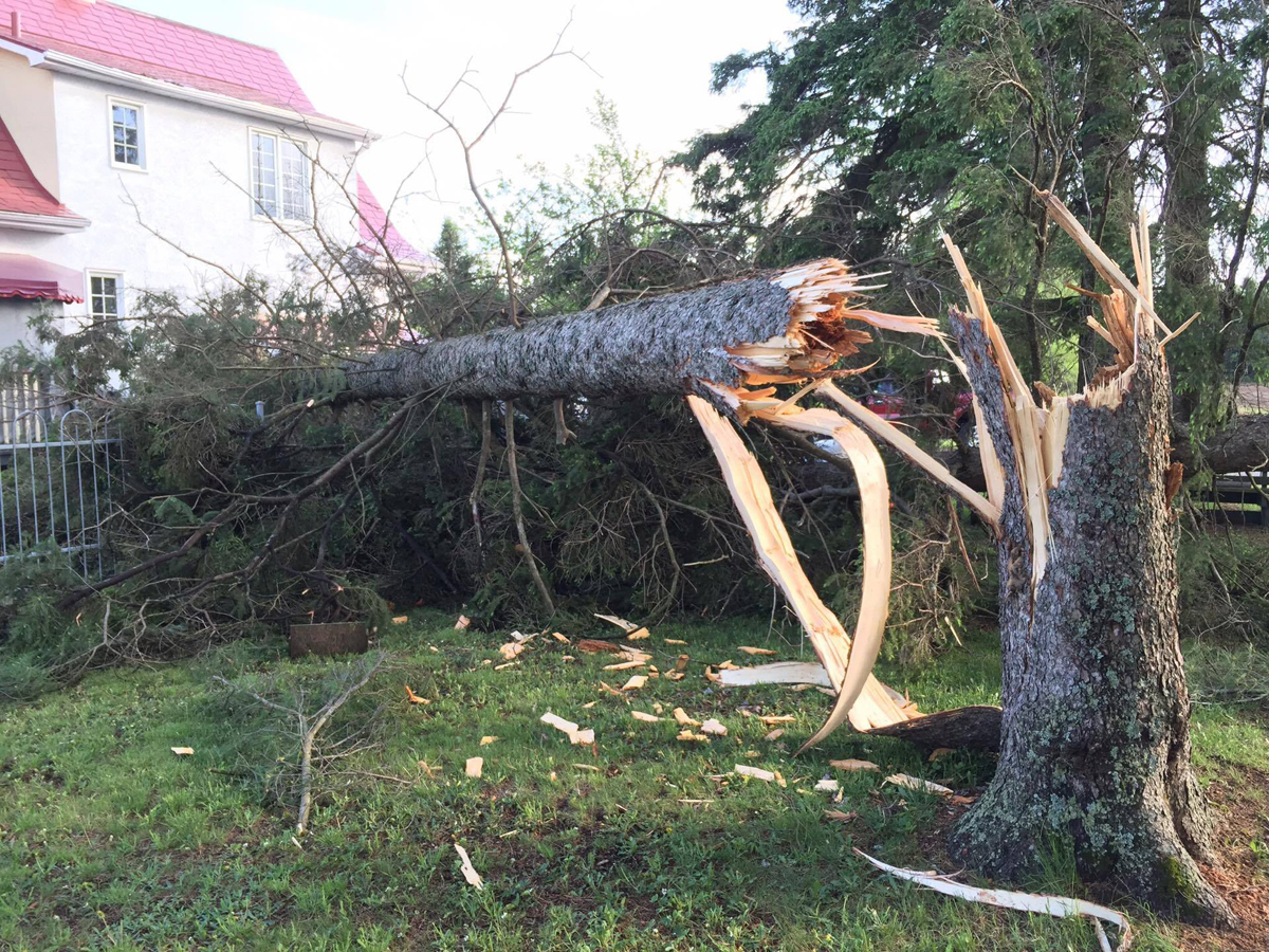 Hier dans la région de Québec, un orage violent a sévi et une micro-rafale a touché la région de Pont-Rouge, plus précisément au nord du village. Les rafales ont atteint environ 120 km/h selon les estimations d’Environnement Canada. Les dégâts causés ont été surtout des arbres et des lignes électriques cassés. Quelques dommages ont été aussi rapportés à des résidences.
