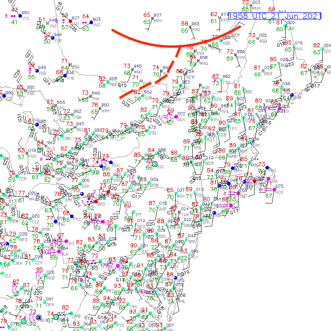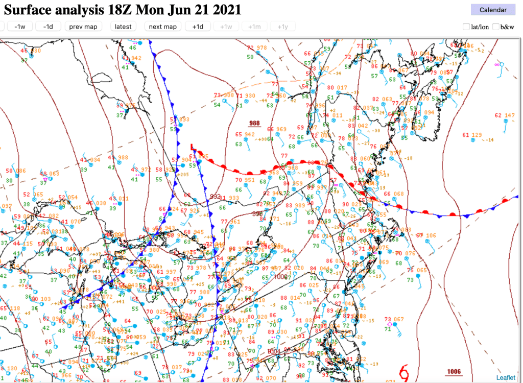 Position du front chaud vers 14h le 21 Juin