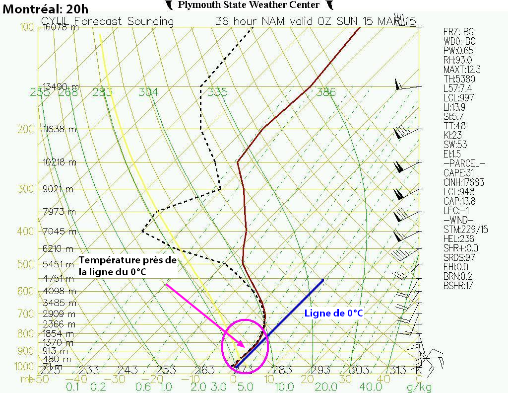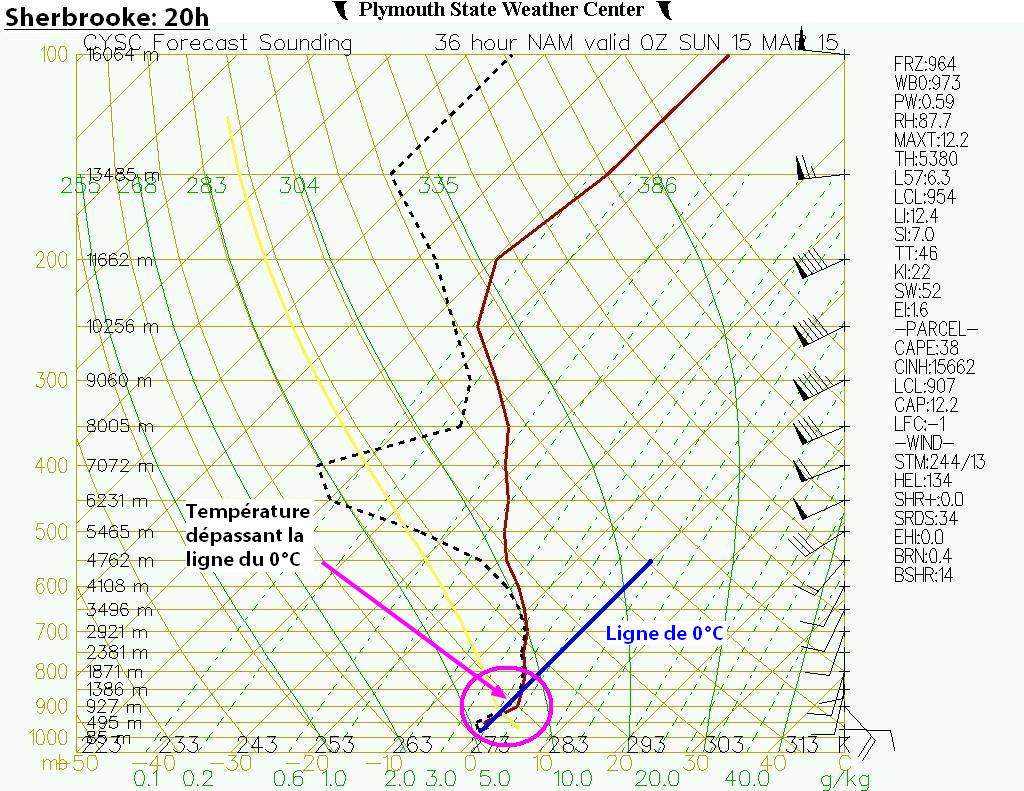 Tout d’abord l’énergie était bien au rendez-vous avec du CAPE entre 2000-3000 j/kg dans l’extrême sud du Québec.